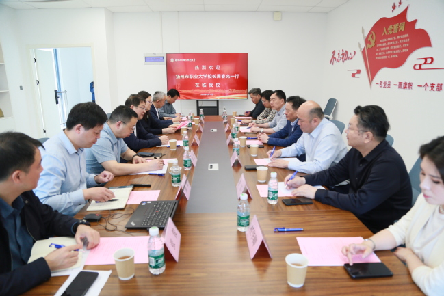4月16日下午,扬州市职业大学党委副书记、校长周春光,党委委员、副校长吴书安一行7人来校调研交流,taptap党委副书记、校长何学军,党委常委、副校长魏萍在双创大楼三楼会议室接待了来宾,相关职能部门负责人陪同接待。