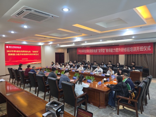 7月5日上午,2025年职业院校跨境电商“双师型”教师能力提升研修班开班仪式在行政楼辅一楼会议室成功举行。来自全国8个省份17所院校的26位财经商贸类专业教师参加了本次研修班。商务贸易学院党委书记邢益军、副院长朱玉赢以及本次培训班授课教师等出席了开班仪式。