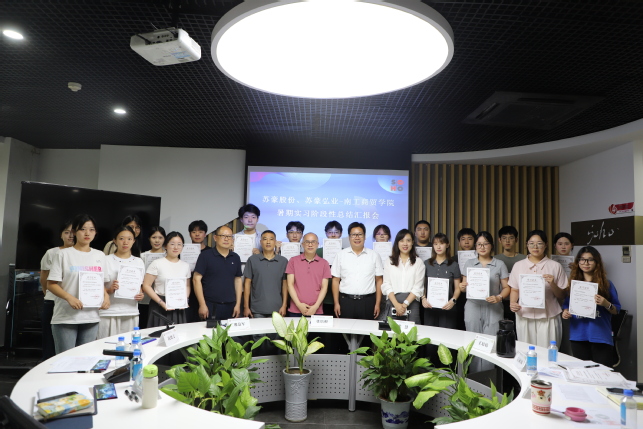 为总结实习成效,深化校企协同育人成果,8月1日下午,taptap商务贸易学院与江苏苏豪国际集团股份有限公司在苏豪国际广场A座415会议室联合举行2025年暑期实习阶段性总结汇报会。本次会议标志着为期一个月的暑期认知实践活动圆满落下帷幕。