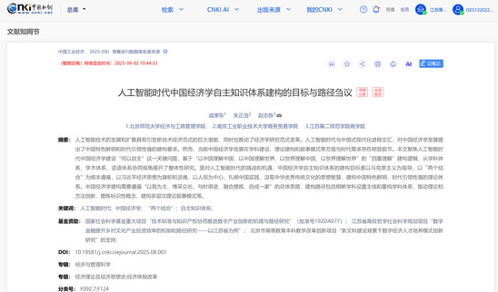 全文约2.8万字,摘要如下:人工智能技术的发展和扩散具有引发新技术经济范式的巨大潜能,同时也推动了经济学研究范式变革。人工智能时代与中国式现代化进程交汇,对中国经济学发展提出了中国特色鲜明和时代引领性强的建构要求。然而,当前中国经济学发展在学科建设、理论建构和叙事模式等方面与时代需求存在明显脱节。本文聚焦人工智能时代中国经济学建设“何以自主”这一关键问题,基于“以中国理解中国、以中国理解世界、以世界理解中国、以世界理解世界”的“四重理解”建构逻辑,从学科体系、学术体系、话语体系协同视角展开了整体性研究。面对人工智能时代的挑战和机遇,中国经济学自主知识体系的建构目标是以马克思主义为指导,以“两个结合”为根本遵循,以习近平经济思想为旗帜和灵魂,以人民为中心,扎根中国实践,汲取中华优秀传统文化的思想智慧,建构中国特色鲜明、时代引领性强的理论体系。中国经济学建构需要遵循“以我为主、博采众长、与时俱进、融合提炼、自成一家”的总体思路,建构路径包括明晰学科设置主线和重构学科体系,推动理论和方法创新,提炼标识性概念,建构多层次理论叙事模式等。