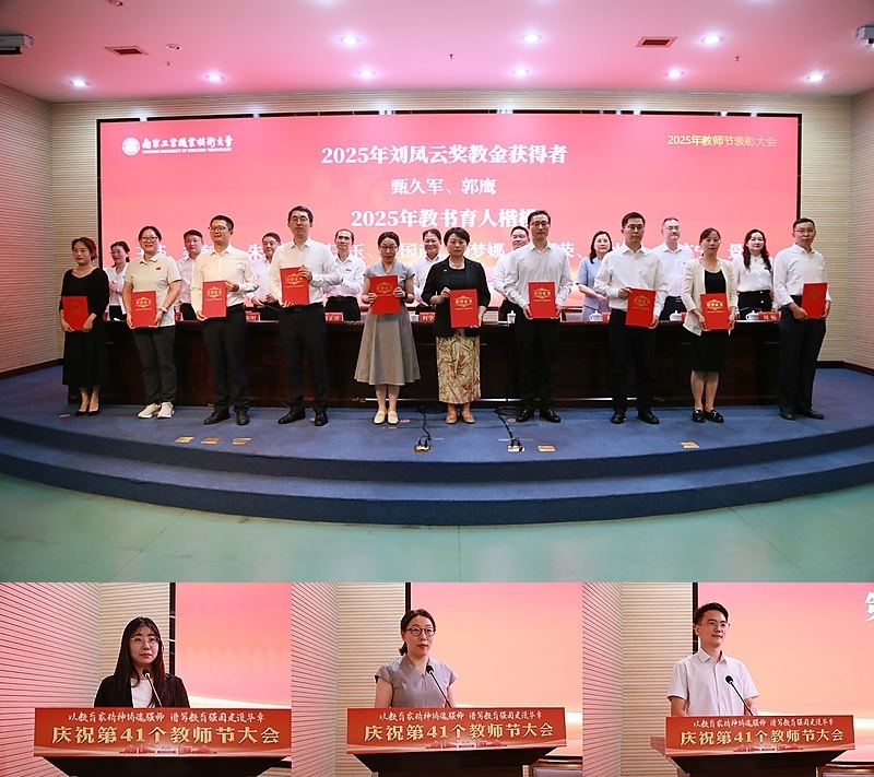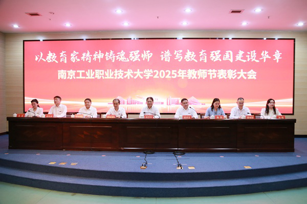 党委副书记、校长何学军代表学校向全体教职工致以节日问候,向受表彰的集体和个人致以热烈祝贺,向每一位辛勤耕耘的南工人表达衷心感谢。他带领与会教师共同学习了习近平总书记在第41个教师节来临之际给全国特岗教师代表的回信,并指出过去一年,全校教职员工紧扣学校发展目标,勠力同心,勇毅前行,推动学校各项工作取得新进展。学校以“双高”建设为新起点,积极推动人才培养、科技服务、产教融合与国际合作等方面的工作,正在奋力攀登职业教育高质量发展的新高峰。这一切成绩的取得,都凝聚着广大南工教师的智慧与汗水。何学军表示,学校始终将教师队伍建设置于核心位置,高度重视每一位教师的成长与发展。学校全面实施“师德塑魂”“双师培育”“头雁领航”“产才融合”四项工程,深入实施“人才强校”战略,强化师德师风建设,紧扣产业发展重点领域精准快捷引才,积极为人才架梯子、搭台子、铺路子,健全分类评价体系,完善科研体制机制,强化人才服务保障,着力提高教职工待遇,努力实现教师队伍规模与质量的双提升。何学军对全体教职工提出希望和要求。一是希望大家涵养教育家精神,以德立身、以德立学、以德施教,做立德树人的“大先生”。二是希望大家锤炼过硬本领,紧跟职业教育发展步伐,持续提升教学创新与专业实践能力,做精业笃行的“授业者”。三是希望大家勇于担当实干,聚焦产教融合与教学改革,敢于创新、凝聚合力,做学校发展的“筑梦人”。希望全体教师潜心育人、立德修身、潜心治学,深入探索人工智能背景下职教本科的教育规律,提升教学质量和内涵,把为学、为事、为人统一起来,做好学生成长的引路人,努力成长为教学名师、领军人才和大国工匠。