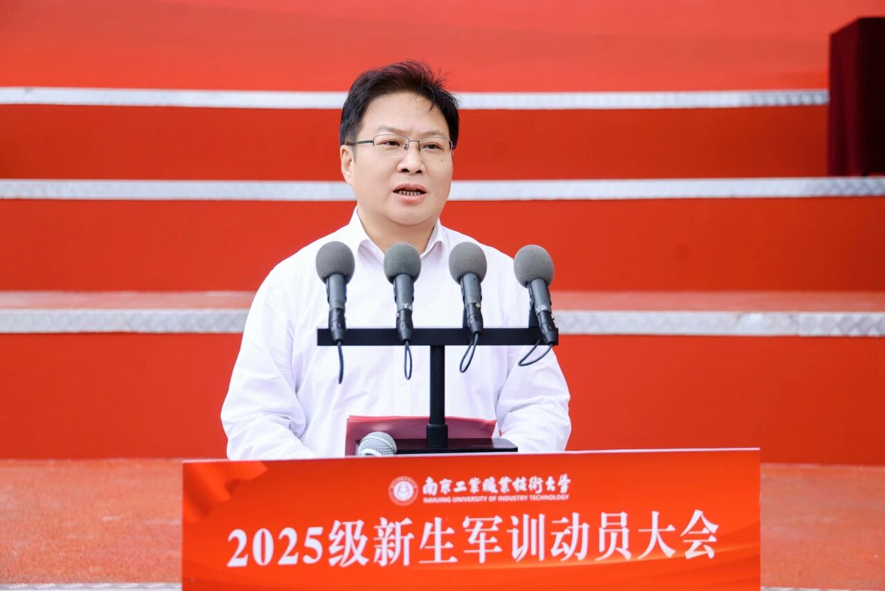 何学军代表学校全体师生员工对2025级新同学的到来表示最热烈的欢迎。他回顾了学校百余年的爱国传承,特别提及在纪念中国人民抗日战争暨世界反法西斯战争胜利80周年阅兵式中,taptap在校生王珂、毕业生王国霖以受阅队员身份为校争光的事迹,让在场新生备受鼓舞。针对接下来的军训,他向新生提出三点希望:一是厚植家国情怀,坚定理想信念,做“心中有国”的追梦人;二是锤炼钢筋铁骨,永葆奋斗底色,做“双手万能”的实干家;三是严明纪律规矩,熔铸集体意识,做“乐群共进”的合作者。他希望同学们充分学习教官不怕困难、英勇顽强的气概与作风,锤炼迎难而上的意志,取得优异的军训成绩,并为未来的学习生活夯实基础。
