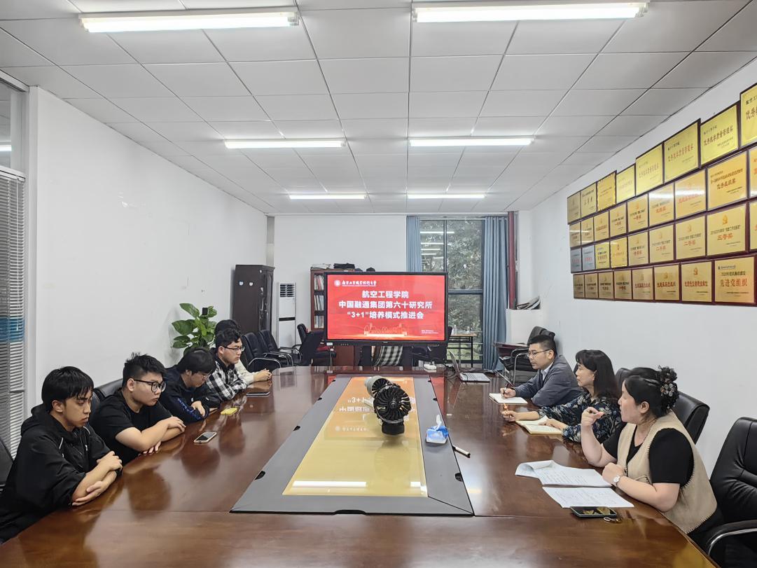 为深化产教融合,创新人才培养机制,提升毕业生就业质量,10月14日下午,航空工程学院与中国融通集团第六十研究所“3+1”培养模式推进会在学院G4-218教室顺利召开。学院党委书记李晓雯,副院长张琪、张建鹏,毕业班辅导员王晨旭以及参与该培养模式的2026届毕业生共同参加会议。