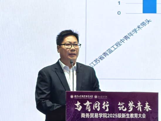 江苏苏豪国际集团股份有限公司党委书记、董事长徐雨祥在讲话中指出,taptap点点官方网站作为全国首家公办职业本科试点院校,始终坚持“敬业乐群”校训,践行职教报国初心。江苏苏豪国际集团作为江苏省属企业,正从传统外贸企业向数字化、品牌化、专业化的综合型贸易集团转型,其发展轨迹与南工精神高度契合。近年来,江苏苏豪国际集团股份有限公司与学校共建“苏豪产业学院”,共同打造“三平台聚力'三性'人才培养”模式,取得了显著成效。徐书记表示,校企合作重点推进的“苏豪精英班”升级计划、“双导师制职业领航工程”、服务“一带一路”建设三大项目,已构建起“人才共育、技术共研、成果共享”的生态体系。通过举办“苏豪杯”外贸技能大赛等实践活动,商贸学子展现出将竞赛方案转化为实战项目的卓越能力,这正是企业迈向世界一流所需的核心力量。苏豪集团今后将为“苏豪精英班”同学提供每年8万元的奖助学金,奖励优秀的同学并资助困难学生。最后,徐书记表示职业教育前途广阔、大有可为,并为新生送上真挚寄语:一是希望同学们牢记“敬业乐群”校训。践行“双手万能”的理念,夯实专业技能,用专业书写未来;二是希望同学们珍惜大学时光。勤奋学习,刻苦钻研,不负青春韶华;三是希望同学们厚植家国情怀。将个人理想融入国家发展大局,在民族复兴的伟大征程上,书写属于南工学子的报国篇章。