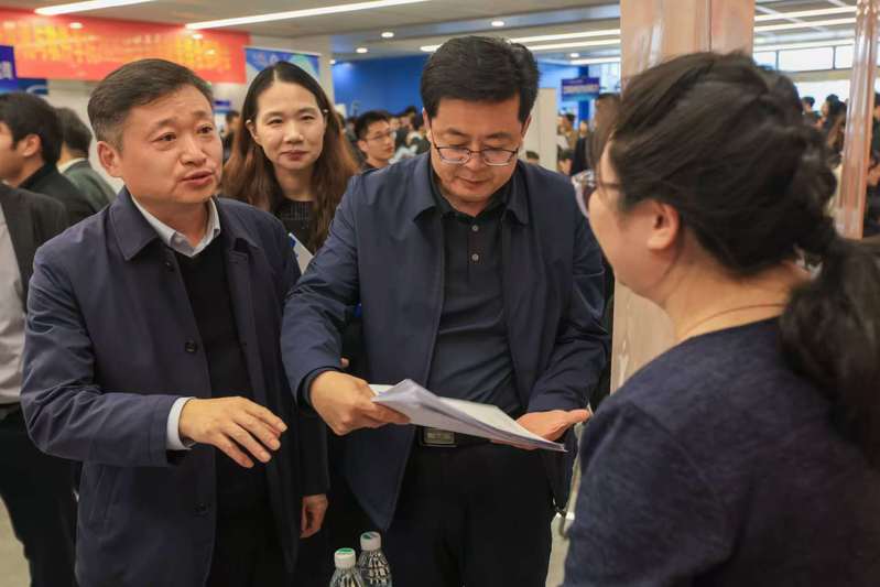 10月29日下午,句容市“福地句才”招才引智专场活动在taptap仙林校区双创大楼成功举办。句容市政府党组成员、镇江市乡村振兴科技镇长团团长沈辉率人社部门、科技镇长团团员及部分企业代表来校开展对接,taptap党委常委、副校长高宏彦出席座谈活动并深入招聘现场交流。党委组织部、党委统战部、人事处、招生就业处负责人以及电气工程学院、计算机与软件学院、电子信息工程学院/集成电路学院、交通工程学院等院系负责人共同参加了座谈交流。