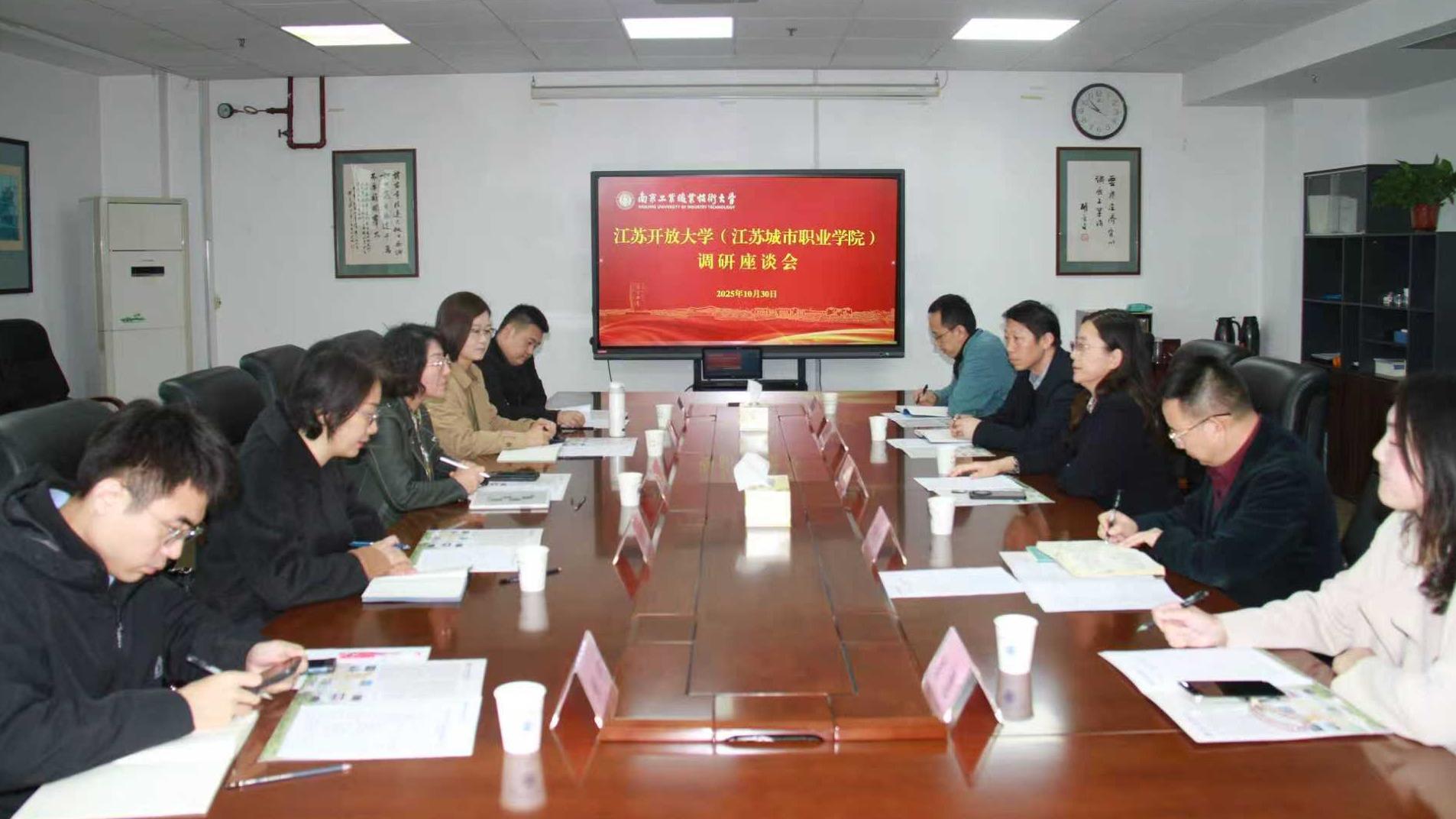 10月30日上午,江苏开放大学(江苏城市职业学院)副校长张晓一行来校调研。taptap党委常委、副校长魏萍在行政楼401会议室接待来宾,相关职能部门负责同志参加座谈。