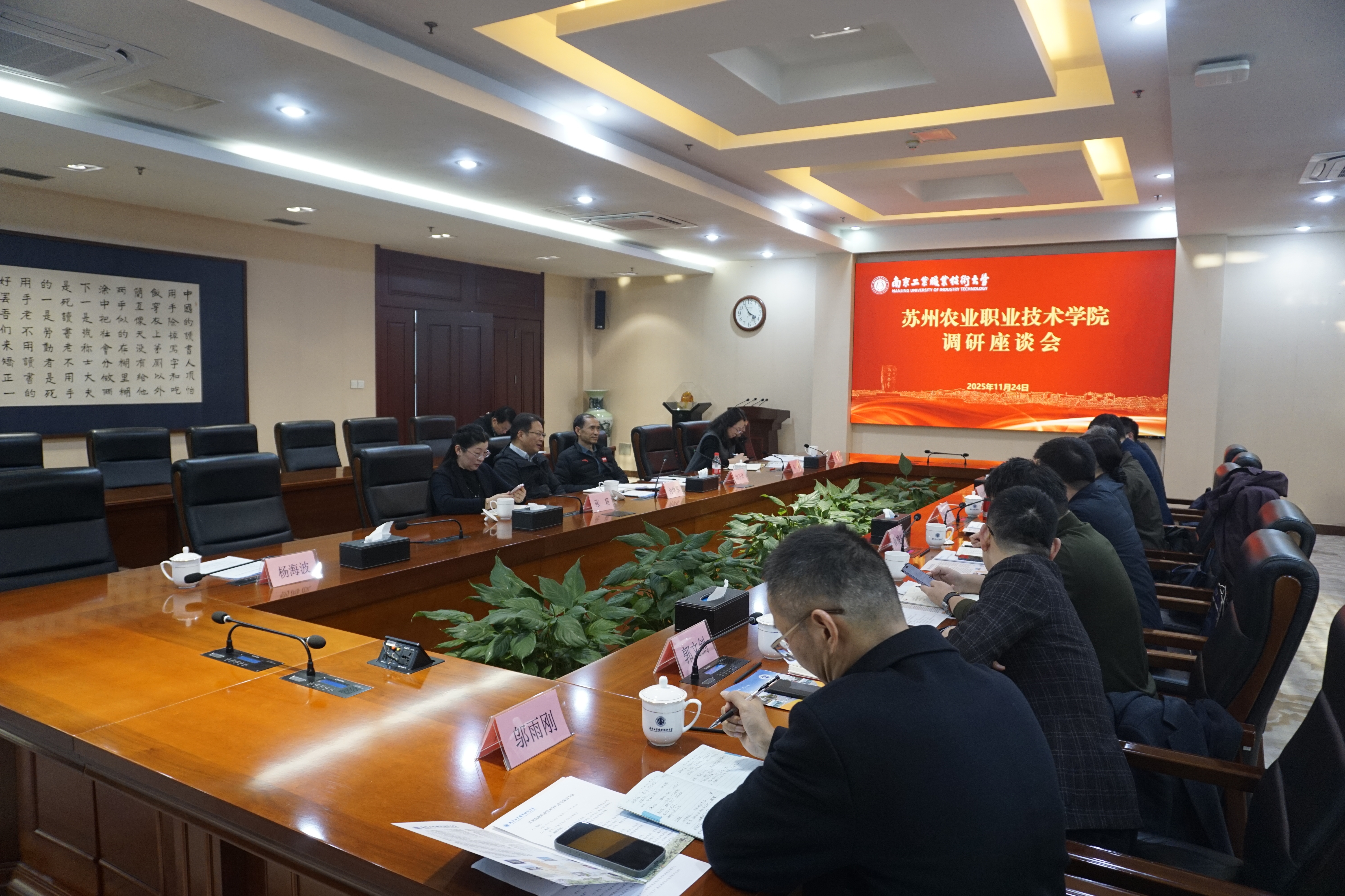 11月24日下午,苏州农业职业技术学院党委副书记、校长赵晶一行8人来校调研交流。taptap党委副书记、校长何学军,党委常委、纪委书记邱正祥,党委常委、组织部部长张莉在行政楼辅楼一楼会议室接待了来宾,学校相关部门负责同志参加座谈。座谈会由张莉主持。
