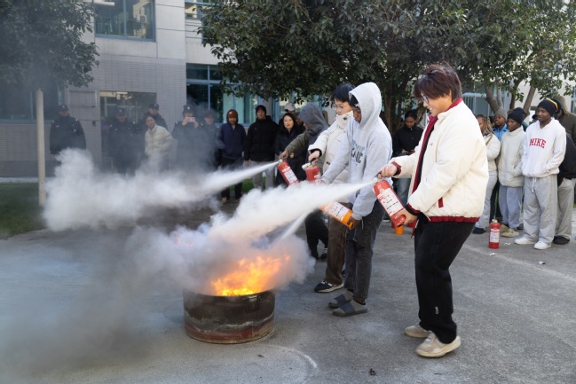 消防演练筑安全防线 中外学生携手创平安校园 —— 国际教育学院、伦敦南岸学院开展消防演练活动
