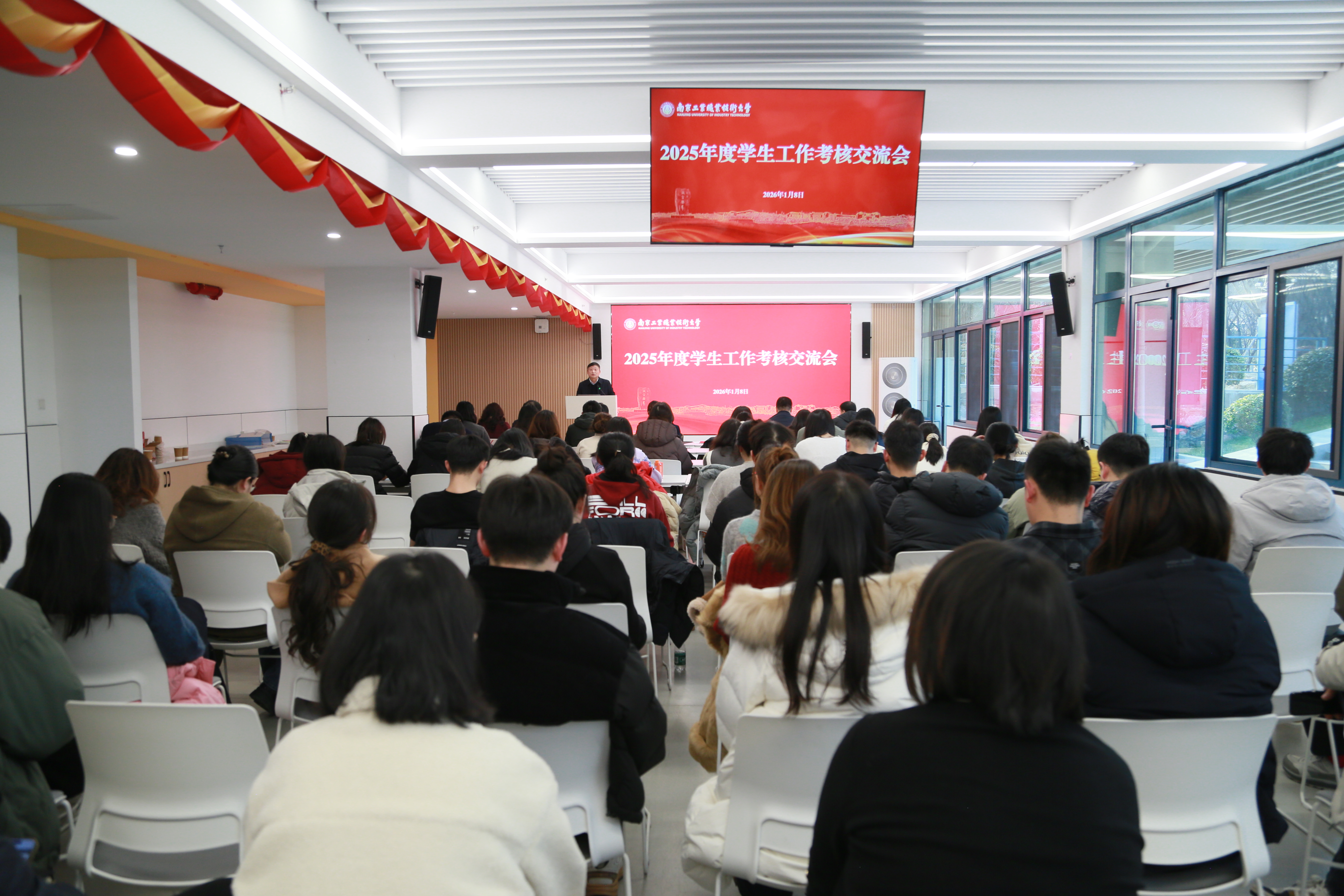 为全面总结2025年度学生工作成效,交流分享特色经验,部署2026年重点任务,1月8日下午,taptap在学生社区匠心讲堂召开2025年度学生工作交流会。校党委常委、副校长高宏彦出席会议并讲话,学生工作处、团委、招生就业处等职能部门负责人,相关学院党委书记、分管学生工作党委副书记、副院长及全体辅导员参加会议。