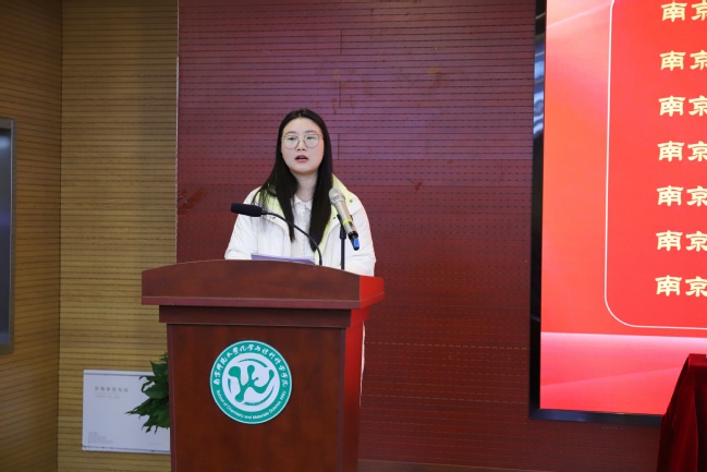 保卫部(处)部(处)长包迎华代表学校上台领奖。陈晨作为“优秀反诈辅导员”代表发言。