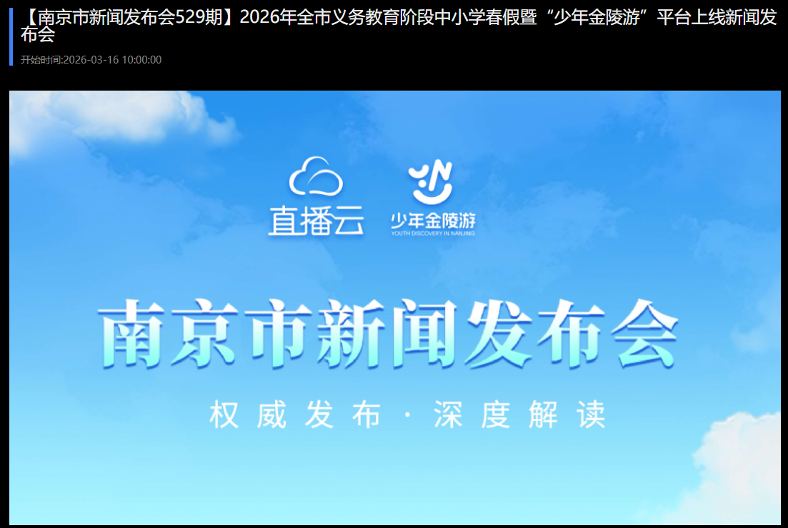 今年4月1日至3日,南京市将在义务教育阶段中小学推行首个春假。“少年金陵游”是南京市为了青少年身心健康和快乐成长而打造的服务平台,由南京文旅集团莫愁科技承担开发建设和运营服务工作,旨在整合全市优质文旅与教育资源,搭建“家校社”联合育人桥梁。全市学生及家长可通过微信小程序或“我的南京”APP搜索“少年金陵游”预约报名。