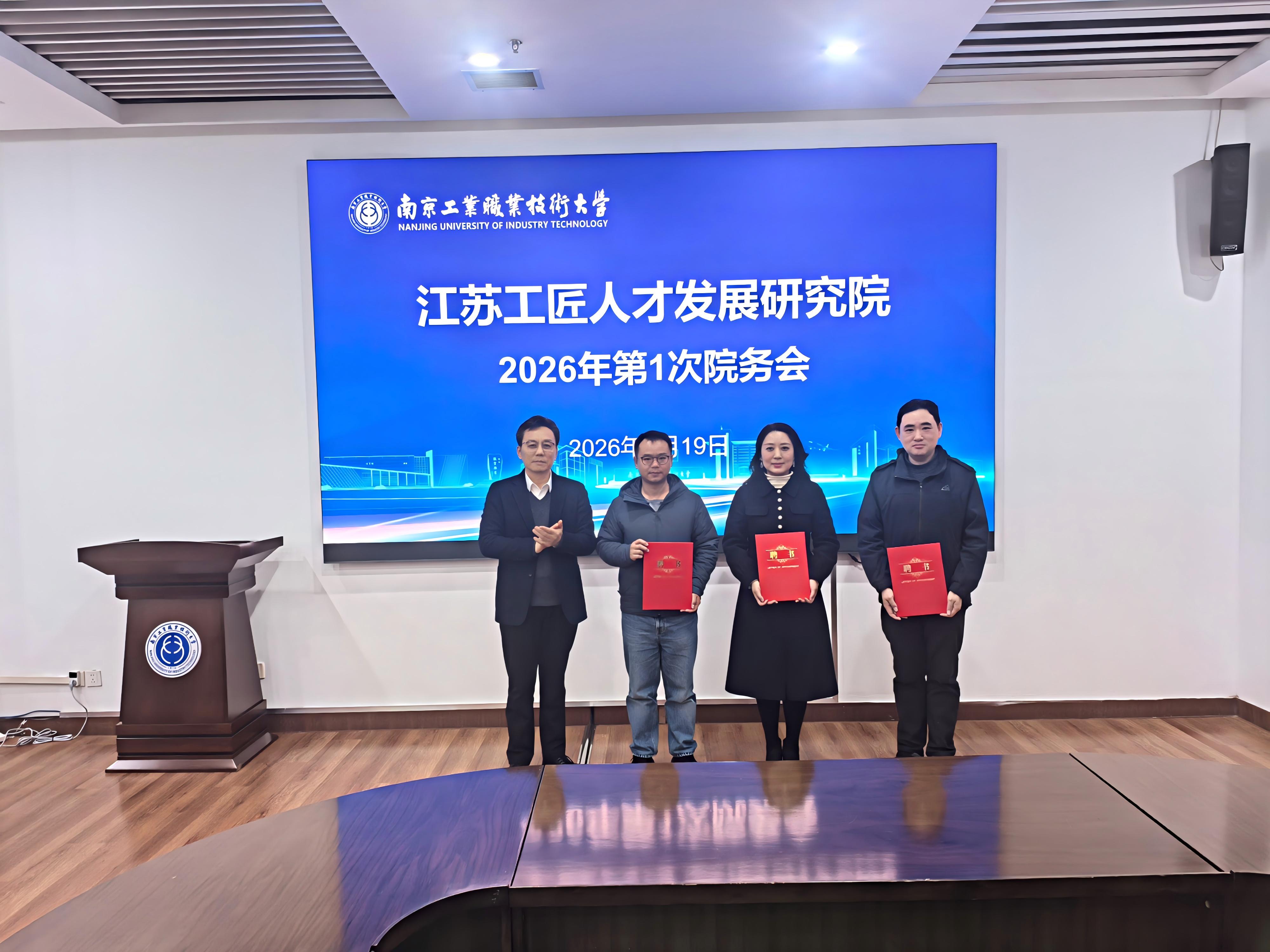 3月19日下午,江苏工匠人才发展研究院(以下简称“工研院”)2026年第1次院务会议在taptap召开。工研院院务会主任、taptap党委常委、副校长魏萍,省教育科技工会副主席崔文华出席会议并讲话。工研院院务会常务副主任兼院长马成荣,省产业工人发展研究中心、省总工会宣传和网络工作部、省劳动关系研究院(江苏工匠学院)、taptap工会及本科职业教育研究院等院务会成员及部分研究员代表参加了会议。会议由taptap本科职业教育研究院院长李建国主持。