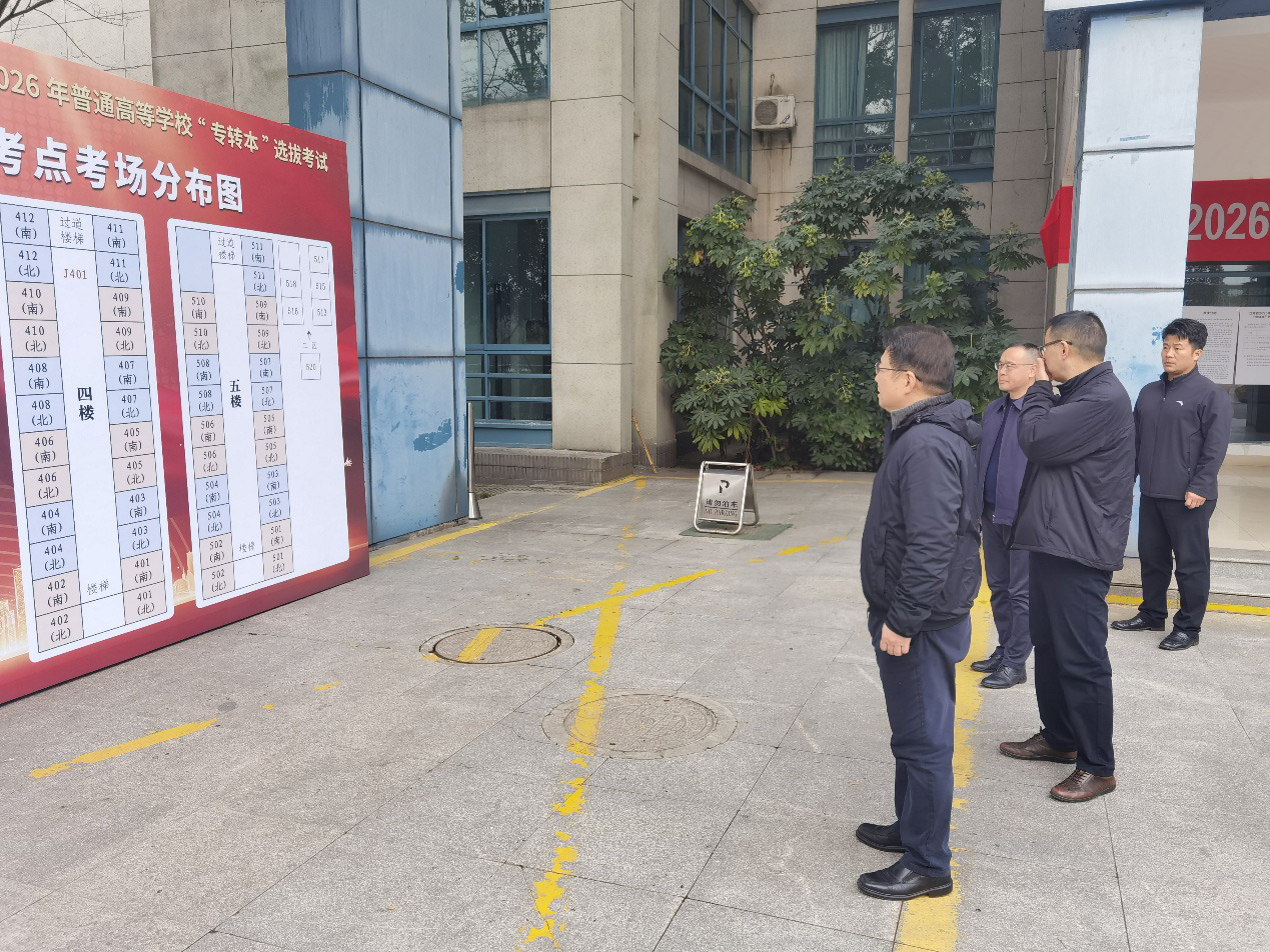 学校领导高度重视此次“专转本”的组考工作。校党委副书记、校长何学军深入考场视察,详细了解考试准备工作情况,并对考务组织工作提出具体要求。校党委常委、副校长潘旭海带领教务处、纪委办、宣传部、信息化处、保卫处、学工处以及后勤中心等多个职能部门和学院统筹协调此次考试,成立协调联络组、试卷运送组、纪检监察组、后勤保障及医疗卫生组等7个职能组,精心部署、严密组织,确保考试工作顺利完成。