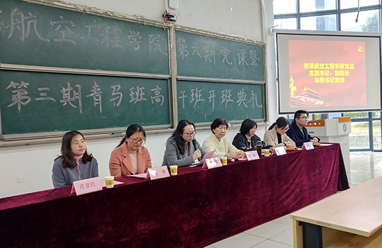 3月20日中午,航空工程学院第六期党课暨第三期青马班-高干班开班典礼在乐群楼J1102举行。航空工程学院党总支副书记、副院长朱燕,航空工程学院特邀党建组织员赵敏,各师生支部书记以及党课学员、青马班学员出席了此次典礼。