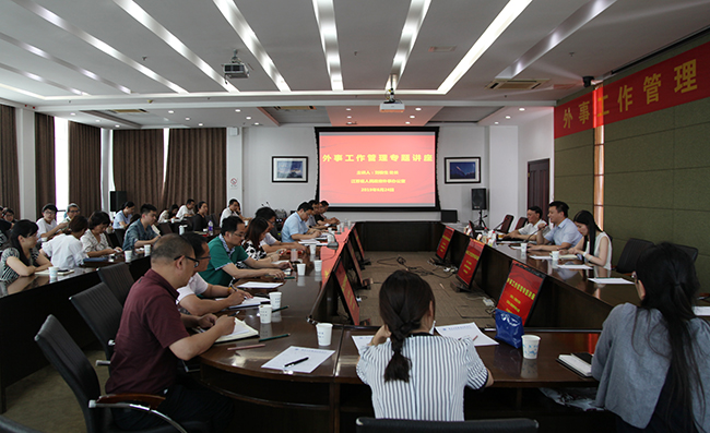 为进一步贯彻落实省委、省政府办公厅《关于加强和改进全省教学科研人员因公临时出国管理的指导意见》文件精神,加强因公出国管理工作,6月24日下午,taptap在行政楼辅二楼举办外事管理工作专题讲座,江苏省人民政府外事办公室刘俊生处长应邀作专题讲座。讲座由校长谢永华主持。国际合作与交流处、国际教育学院全体人员、各二级学院分管国际化工作负责人、办公室主任、外事秘书、近期出访的团组负责人参加了此次讲座。
