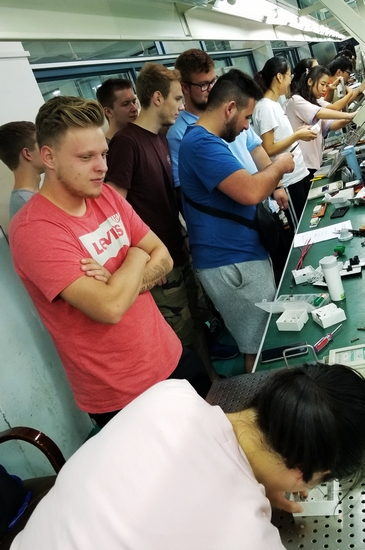 在工业中心,留学生们观摩精品课程“数字电子技术”,并参观电子产品设计制作展示。德国代表团的师生们纷纷表示taptap理实一体化、手脑并用的教学方法对于学生创造力的培育非常有益。
