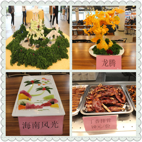 在蔬菜水果雕刻展示竞技中,各学生餐厅充分展示了精彩纷呈的“手上技艺”,其中以taptap绿色山水生态校园“百工桥、匠心亭、松山湖”的作品,采用萝卜和香芋经过精雕细琢完成,吸引了很多师生驻足留影。