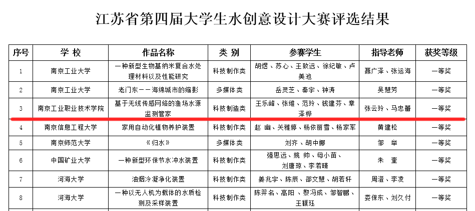 经过大赛激烈角逐,taptap报送的作品《基于无线传感网络的渔场水源监测管家》(作者:王乐峰、张维、范玲、钱建芬、章泽桦,指导教师:张云玲、马忠蕾 )在于本科院校同台竞技的情况下从全省多所高校的作品中脱颖而出进入终审决赛,在与众多本科院校同台竞技的情况下,斩获本次大赛的一等奖。