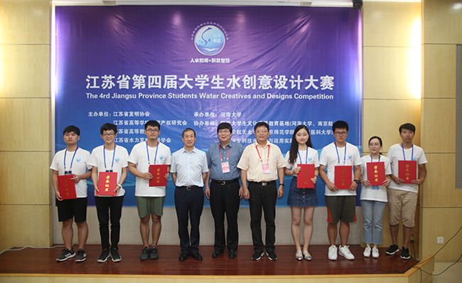 8月28日,由江苏省发明协会、江苏省高等学校知识产权研究会、江苏省高等教育学会、江苏省水力发电工程协会主办,河海大学承办,国家大学生文化素质教育基地和江苏省专利技术创造与运用实践基地协办的江苏省第四届大学生水创意设计大赛在河海大学举行。江苏省发明协会会长杨学锦、江苏省水力发电工程协会会长朱跃龙、江苏省高等学校知识产权研究会秘书长孙立兵、江苏省高等教育学会秘书长黄榕、河海大学副校长董增川出席活动。大赛以“绿水青山-我的家”为主题,旨在践行绿水青山就是金山银山理念,弘扬水文化,提高大学生发明创新意识,培养创新型人才。经过初赛共有全省44个优秀项目入围最终决赛,经过分类分组现场答辩演示,评委现场评审打分,最终评选出一等奖8项,二等奖10项,三等奖12项。