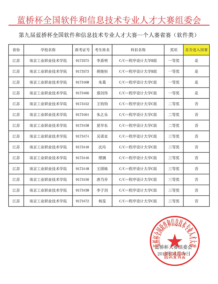 本着“以赛促教”“以赛促学”的初衷,更好地加强程序设计课程教学,提高学生的职业能力,工程中心高度重视并全力支持此项赛事,积极动员、组织学生训练参赛。参赛选手、指导教师克服诸多不利因素,充分利用寒假等课余时间,努力学习、训练,实践能力和综合素质得到了明显提高,不仅在高职高专组取得了优异的成绩,并在高级别组(B组)也获得了优异成绩。