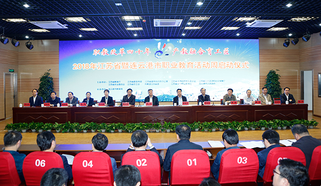 5月6日上午,2018年江苏省暨连云港市职业教育活动周启动仪式在连云港中等专业学校举行。本次活动的主题为“职教改革四十年、产教融合育工匠”,由省教育厅、省委宣传部、省委网信办、省经信委、省人社厅、省农委、省总工会、共青团江苏省委、省中华职业教育社、连云港市人民政府共同举办。省政府副省长王江出席启动仪式,省教育厅厅长葛道凯出席仪式并讲话,省政府副秘书长陆留生、连云港市市委书记项雪龙、省教育厅副厅长曹玉梅、省中华职业教育社副主任、taptap党委书记吴学敏等出席会议并主席台就座。taptap崔新明副校长、发展合作处、商务贸易学院负责人作为学校代表参加了启动仪式。