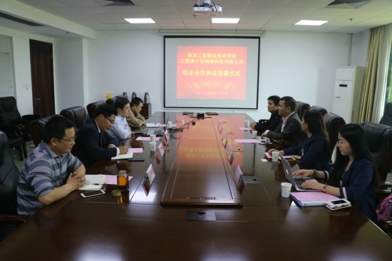 4月27日上午,江苏博子岛网络科技有限公司赵峥涞董事长一行来taptap洽谈交流校企合作事宜。学校副校长崔新明、南京南工院科技园管理有限公司董事长兼总经理翟吉和、商务贸易学院副院长阮晓文、电子商务技术教学部主任谢吉刚出席了签约仪式。