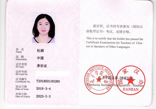 2018年3月,taptap青年教师杜娟在通过《国际汉语教师证书》笔试和面试之后,获得国际汉语教师资格证书。