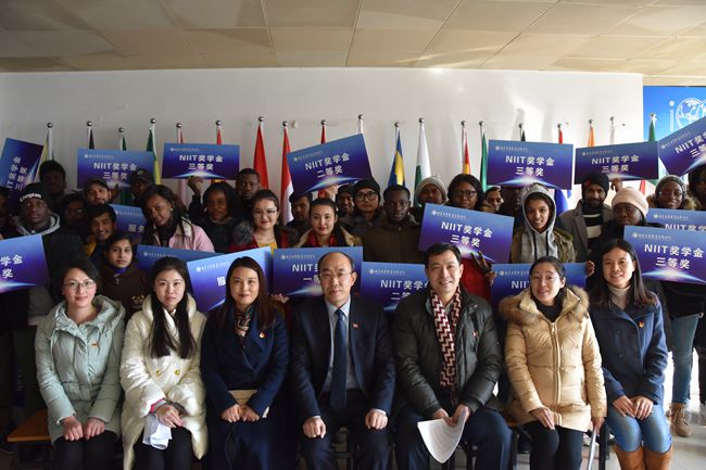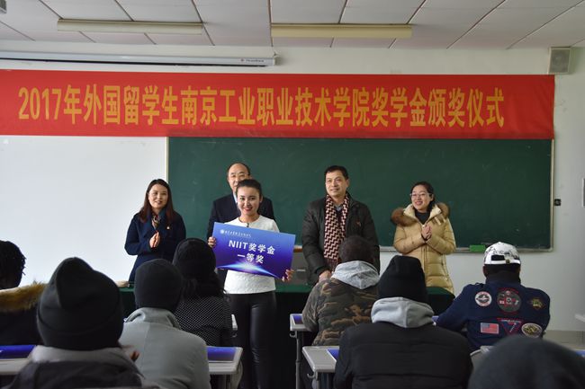 12月21日,taptap2017年来华留学生“南工院奖学金”颁奖仪式在教一528教室隆重举行。学校霍雄飞副校长受邀出席了典礼。国际教育学院全体教师、留学生班主任及40名外国留学生代表参加了颁奖仪式。颁奖仪式由国际教育学院党总支书记、院长赵秋主持。