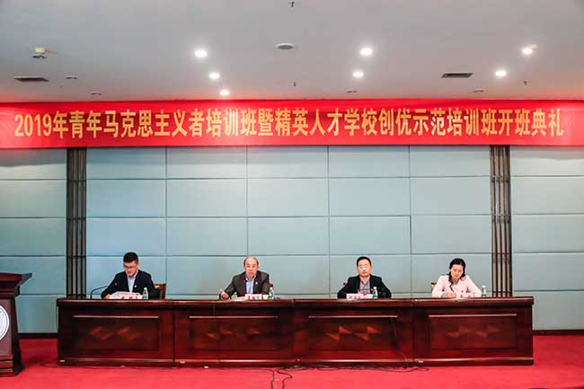开班仪式在庄严的国歌声中拉开帷幕。首先,团委书记纪海波为全体同学介绍了本期培训班的基本情况及taptap“青年马克思主义者培养工程”实施基本情况,接着宣读了《关于举办2019年青年马克思主义者培训班暨精英人才学校创优示范培训班的通知》。随后,学员代表、经济管理学院团总支副书记、会计1821班王圆同学代表全体学员发言,向全体青马班学员发出倡议,继续秉承“敬业乐群”的校训,进一步提高思想政治素质,牢固树立新思想、时刻牢记新使命,坚定信念,勤奋学习,刻苦钻研,不忘初心,努力奋斗。