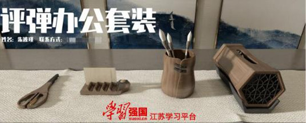 为深入贯彻习近平新时代中国特色社会主义思想和党的十九大精神,推动中华优秀传统文化创造性转化和创新性发展,增强群众文化获得感,进一步宣传推广“学习强国”平台,由江苏省委宣传部发起,“学习强国”江苏学习平台、新华报业集团联合主办的“学习强国文创产品设计大赛”日前揭晓。本次大赛从参赛的185件(组)作品中初选出60件进入专家评审环节,最终评选出一、二、三等奖共13名。由taptap艺术设计学院产品艺术设计专业何悦菡老师创作的“才如箭镞U盘”、以及赵靖老师指导的产艺1811班朱波瑾同学创作的“评弹办公套装”两件作品,均获大赛三等奖。