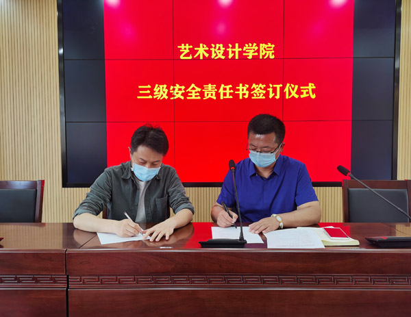 为进一步加强艺术设计学院各项工作科学合理、安全稳定、高效有序地推进,切实落实“一岗双责”,5月13日,艺术设计学院2020年度“落实全面从严治党责任书、教职工意识形态工作责任书、教职工师德师风责任书、网络安全责任书、三级/四级安全责任书”签订仪式在天堂校区六楼会议室举行。