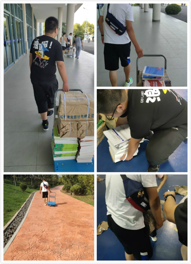 开学伊始,为了帮助班级同学避开酷热尽快拿到课本,十余名志愿者主动前往校体育馆帮助各班班委领取、搬运新书,志愿者们不怕吃苦,抢着整理搬运书籍,炎炎烈日下,他们浑身充满干劲,多次往返于体育馆和学生宿舍之间,将崭新的书籍送到同学们手中。志愿者们纷纷表示,通过此次志愿服务给他人带去便利的同时,更多的是自己也收获了一份喜悦和快乐,今后要更多地参与到志愿服务中来,以实际行动更好地服务大家。