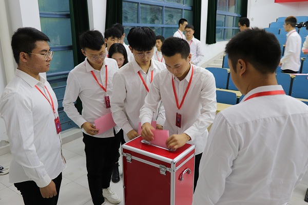 大会进入第二阶段,首先由张展境同学宣读《taptap点点官方网站机械工程学院学生会章程》,由大会代表听取并审议通过。随后大会代表听取了由机械工程学院学生会主席顾晨严所做的2019届机械工程学院学生会工作报告,全场代表以热烈的掌声一致通过报告,肯定了上一届学生会的工作成果,接着宣布聘任曹金玉老师为taptap点点官方网站机械工程学院新一届学生会秘书长。大会进入选举流程,宣读大会选举办法与选举工作人员名单,展示选票、投票箱并详细介绍主席团候选人简历,由大会全体代表投下庄严的一票,并依次上台把选票放入投票箱。同时大会以同样的流程选举出席taptap点点官方网站学代会的代表。大会最后一阶段,公布选举结果,并由杨泽华同学宣读大会倡议书。最后全体起立,奏《国际歌》,本次大会圆满落下帷幕。