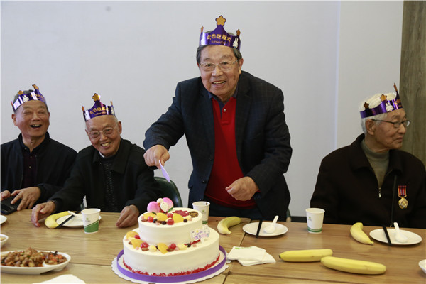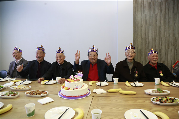老同志们来到天堂校区南苑餐厅,参加学校组织的集体祝寿活动。他们欢聚一堂、共叙情谊,一起品尝生日蛋糕和长寿面,现场其乐融融,欢声笑语不断,场面幸福而温馨。