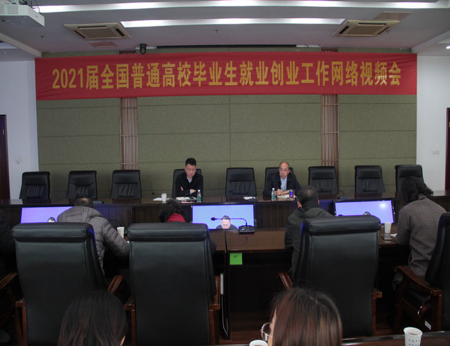 12月1日上午,教育部、人力资源和社会保障部召开2021届全国普通高校毕业生就业创业工作网络视频会议。taptap在行政楼辅楼二楼设分会场,党委副书记、校长谢永华,党委委员、副校长霍雄飞,招生就业处、学生工作处、团委、创新创业学院等部门负责人,各学院党政负责人以及毕业班辅导员等30余人参加了会议。