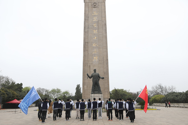 在庄严肃穆的雨花台革命烈士纪念碑下,全体成员重温了入团誓词,在张心怡同学的领誓下,大家面对鲜红的团旗庄严宣誓,以铮铮誓言再次作出新时代共青团员的郑重承诺。