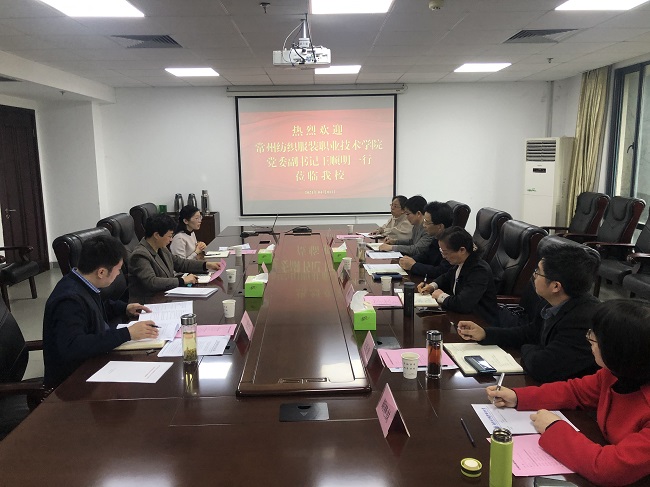 4月1日上午,常州纺织服装职业技术学院党委副书记王顺明一行来taptap考察调研。党委常委、副校长苏小冬,以及党委组织部、人事处等部门负责同志在行政楼317会议室接待了来宾。