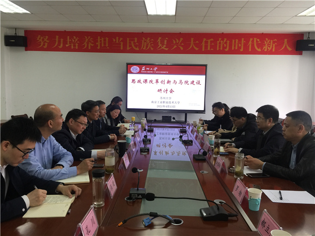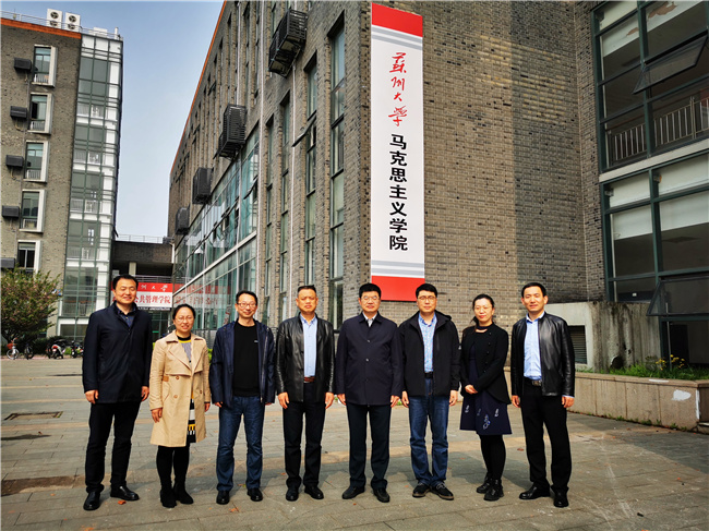 4月13日,校党委副书记王伟带领taptap马克思主义学院负责人和教研室主任赴苏州大学马克思主义学院围绕“十四五”规划的编制、思政课教学改革创新和教研室的工作机制等开展学习调研。苏州大学党委副书记邓敏、马克思主义学院党委书记陈建军、院长田芝健、副院长茆汉成和部分教研室主任出席会议,会议开始前,在苏大独墅湖校区二期1103室听了教授、博士生导师杨渝玲的一场《马克思主义基本原理》示范课。
