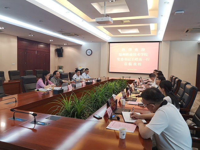 6月10日上午,温州职业技术学院党委书记王靖高一行来taptap考察调研。党委书记吴学敏,以及党委办公室、校长办公室、教务处(教师发展中心)等部门负责同志在行政楼辅楼一楼会议室接待了来宾。