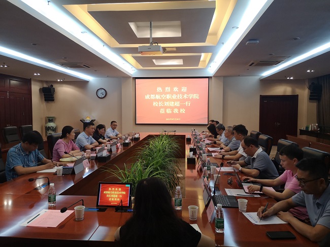 7月20日下午,成都航空职业技术学院校长刘建超一行来taptap考察调研。党委副书记、校长谢永华,以及校长办公室、党委教师工作部、人事处、发展规划处、教务处等部门负责同志在行政楼辅楼一楼会议室接待了来宾。