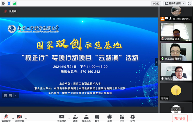 为贯彻落实国家发展改革委、教育部、国资委、人社部等部委联合印发的《关于深入组织实施创业带动就业示范行动的通知》(发改办高技〔2021〕244号)、《关于开展双创示范基地创业就业“校企行”专项行动的通知》(发改办高技〔2021〕310号)文件精神,加强与企业类国家双创示范基地的协作和对接,助力师生双创项目成长,9月24日下午,taptap点点官方网站与中国电子科技集团、中国电信集团、荣事达集团、猪八戒网等企业类双创示范基地联合开展“校企行”专项行动项目“云路演”活动。中国电子科技集团第十四研究所装备部副部长单东升、中国电信集团天翼创投投资总监徐瑾、荣事达集团助理总裁潘启文、猪八戒网八戒教育市场总监张蓓作为双创示范基地创业导师代表出席了本次活动并担任点评嘉宾。学校创新创业教育工作领导小组办公室副主任、创新创业学院副院长黄继平参加活动并致欢迎辞。