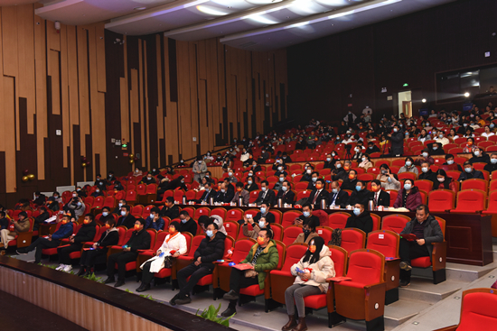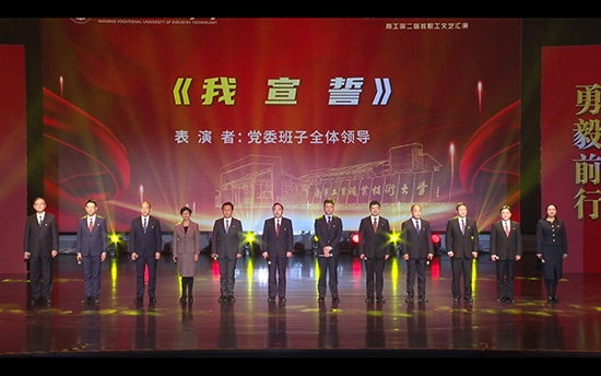 12月29日下午,“庆建党百年  聚奋进力量”南工第二届教职工文艺汇演在大学生创新发展中心剧场举行。学校党委班子全体领导出席并参与演出。按照疫情防控相关要求,部分教职工经过体温检测并全程佩戴口罩参加了本次活动。