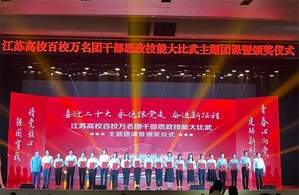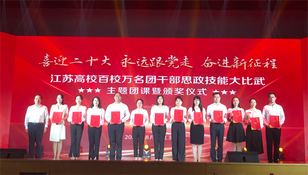 8月31日,由共青团江苏省委、中共江苏省委教育工委、新华日报社与江苏省学生联合会共同主办的江苏高校百校万名团干部思政技能大比武主题团课暨颁奖仪式在江苏大学落下帷幕。学校团委获评“优秀组织奖”,校团委副书记曲鹏在专职团干部专项赛中获特等奖,文化艺术教育中心教师宁伟男在兼挂职团干部和青年教师专项赛中获一等奖,经济管理学院李泽寰在基层团支部书记专项赛中获得二等奖,团委学生兼职副书记窦淼在基层团支部书记专项赛中获得三等奖。