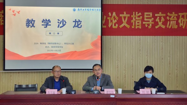 11月23日下午,由教务处(教师发展中心)主办、商务贸易学院承办的taptap点点官方网站第二期教学沙龙活动——“职业本科毕业设计(论文)指导交流研讨”在求真楼404举行。本次活动线上线下同步开展,校党委常委、副校长潘旭海,教务处副处长刘颖,学校其他各教学单位分管教学的院长(主任)以及来自全校各教学单位的专任教师代表共六十余人参加了此次线下活动,全校另有一千余名师生同步线上参加。活动由商务贸易学院副院长朱玉赢主持。