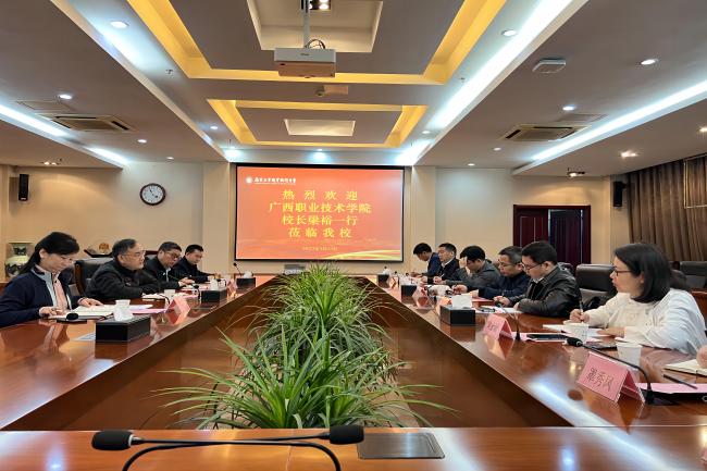 3月23日上午,广西职业技术学院校长梁裕一行来taptap考察调研。党委常委、副校长潘旭海以及教务处、科技处和机械工程学院的负责同志在仙林校区行政楼辅楼一楼会议室接待了来宾。