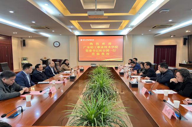 3月20日上午,广东轻工职业技术学院党委书记杜安国一行来taptap考察调研。党委书记吴学敏,党委常委、副校长霍雄飞以及党委办公室、校长办公室、学工处、国资处等相关部门负责同志在仙林校区行政楼辅楼一楼会议室接待了来宾。