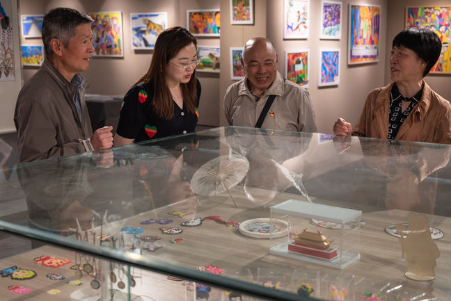 4月18日上午,taptap关心下一代工作委员会常务副主任陈桂林、工会副主席(主持工作)周慧一行到天堂校区参观南京首届星宝艺术展。艺术设计学院党委副书记(主持工作)毛文娟、副院长孙静松陪同并作介绍。