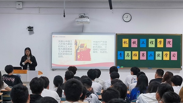 为深入学习贯彻党的二十大精神,加强青年学生骨干培养,提升理论素养、坚定理想信念、增强业务能力,5月30日,机械工程学院邀请了马克思主义学院马忠蕾老师在乐群楼204教室开展了以“我们的党”为主题的讲座,全体青马班成员参加。
