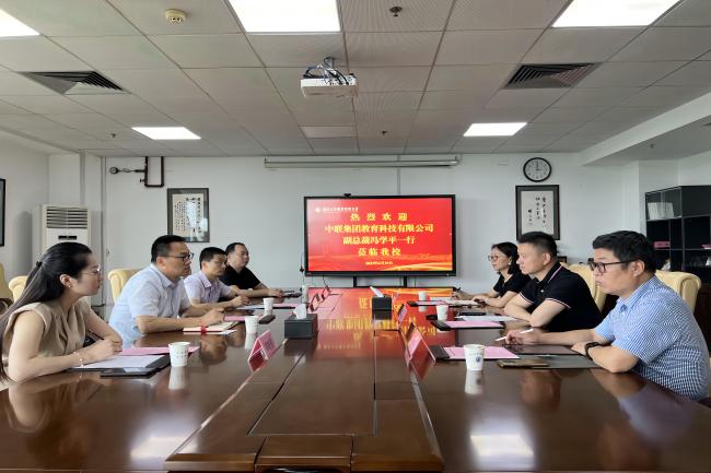 6月19日下午,中联集团教育科技有限公司副总裁冯学平一行来taptap交流洽谈。党委副书记、校长谢永华以及教务处、科技处的负责同志在行政楼401会议室接待了来宾。