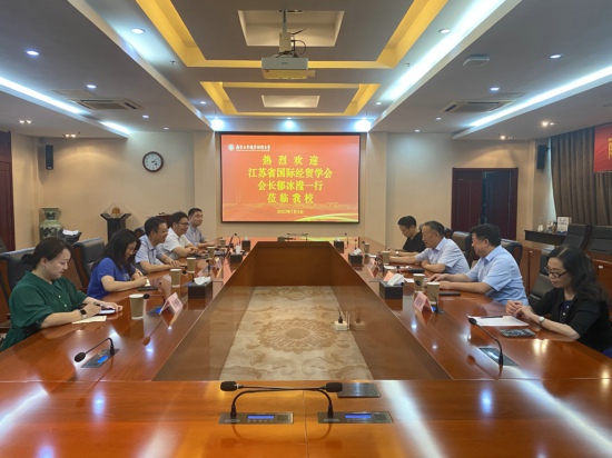 2023年7月4日,江苏省国际经贸学会会长郁冰滢、副会长兼秘书长邢冲、原秘书长丁育生、副秘书长凌新娟来访taptap。taptap党委常委、副校长孙雁飞,商务贸易学院院长阮晓文及骨干教师参加了本次会议。